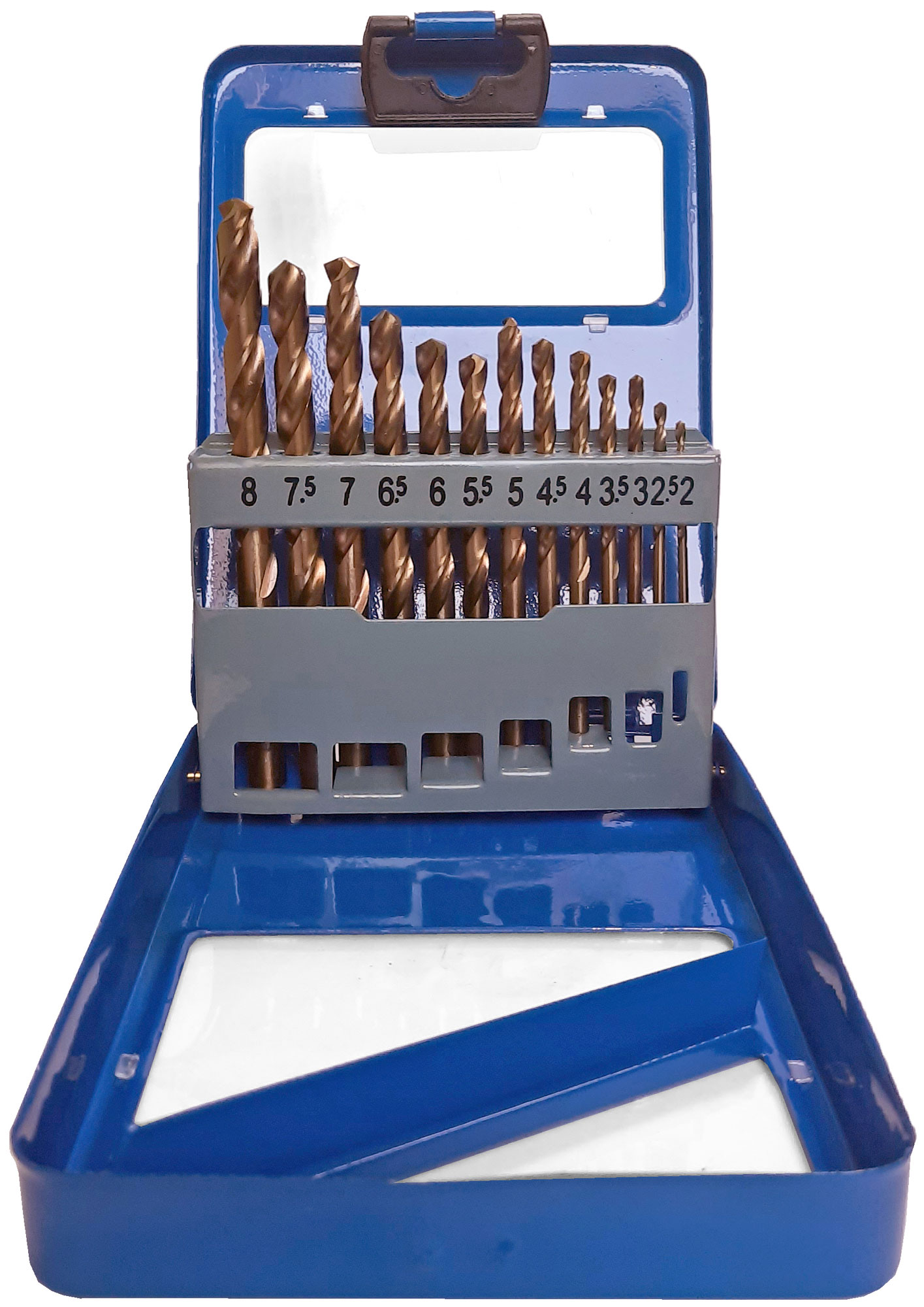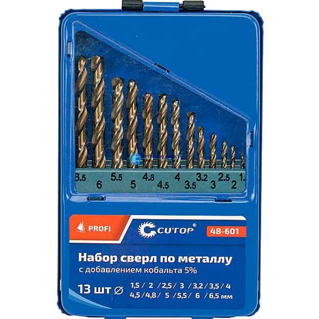 Набор сверл по металлу с кобальтом 5% в металлической коробке, 2-8 мм (через 0.5 мм), 13 шт, Profi, код 48-603, производитель CUTOP