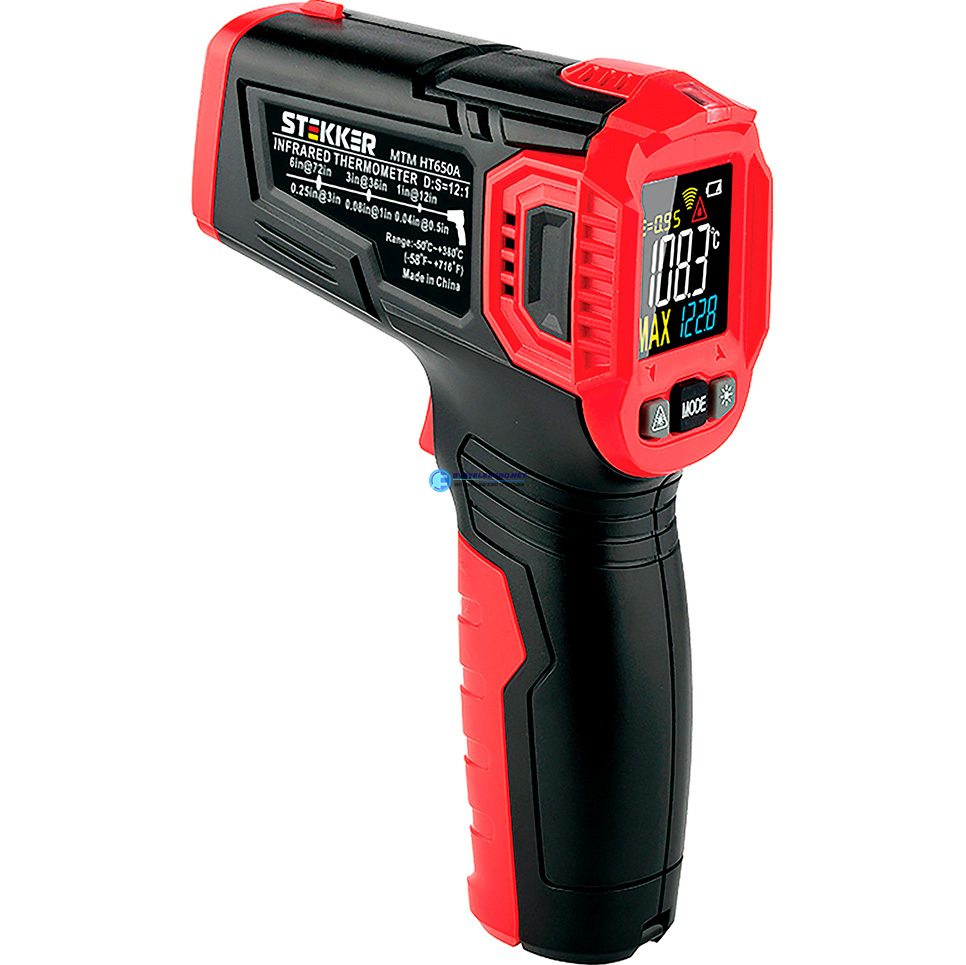 Измеритель температуры дистанционный (пирометр) 2 батареи типа ААА 1,5В черный/красный MTM HT650A, код 49998, производитель Stekker