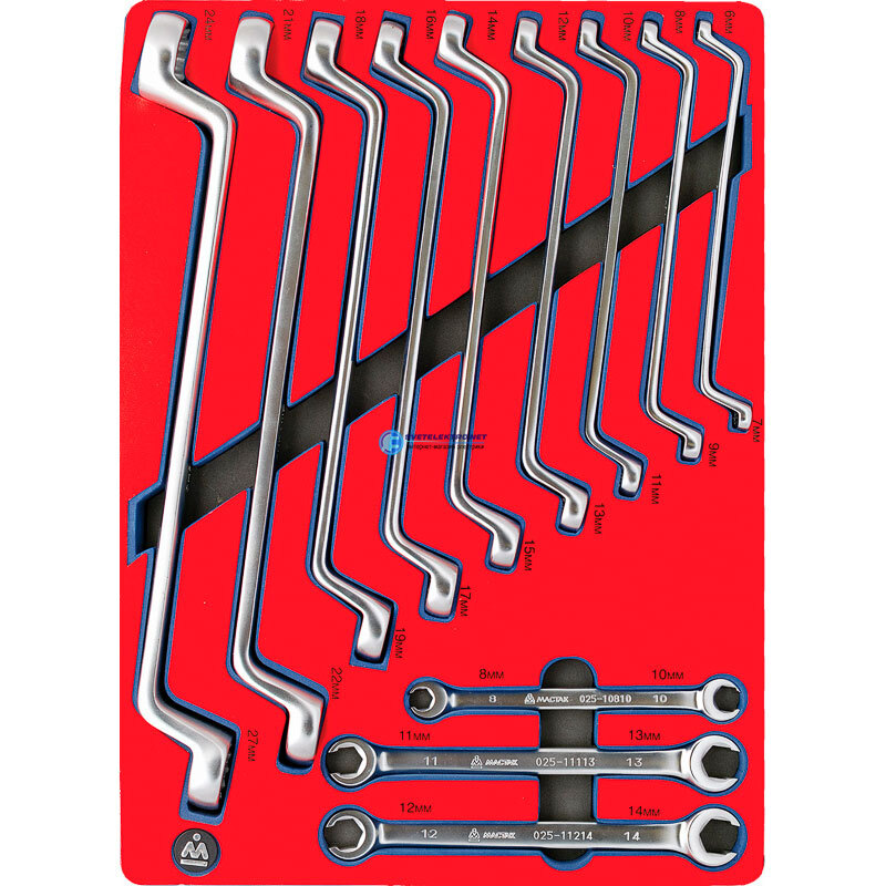 Набор накидных и разрезных ключей зеркальная полировка ложемент предметов, код 5-23112, производитель Мастак