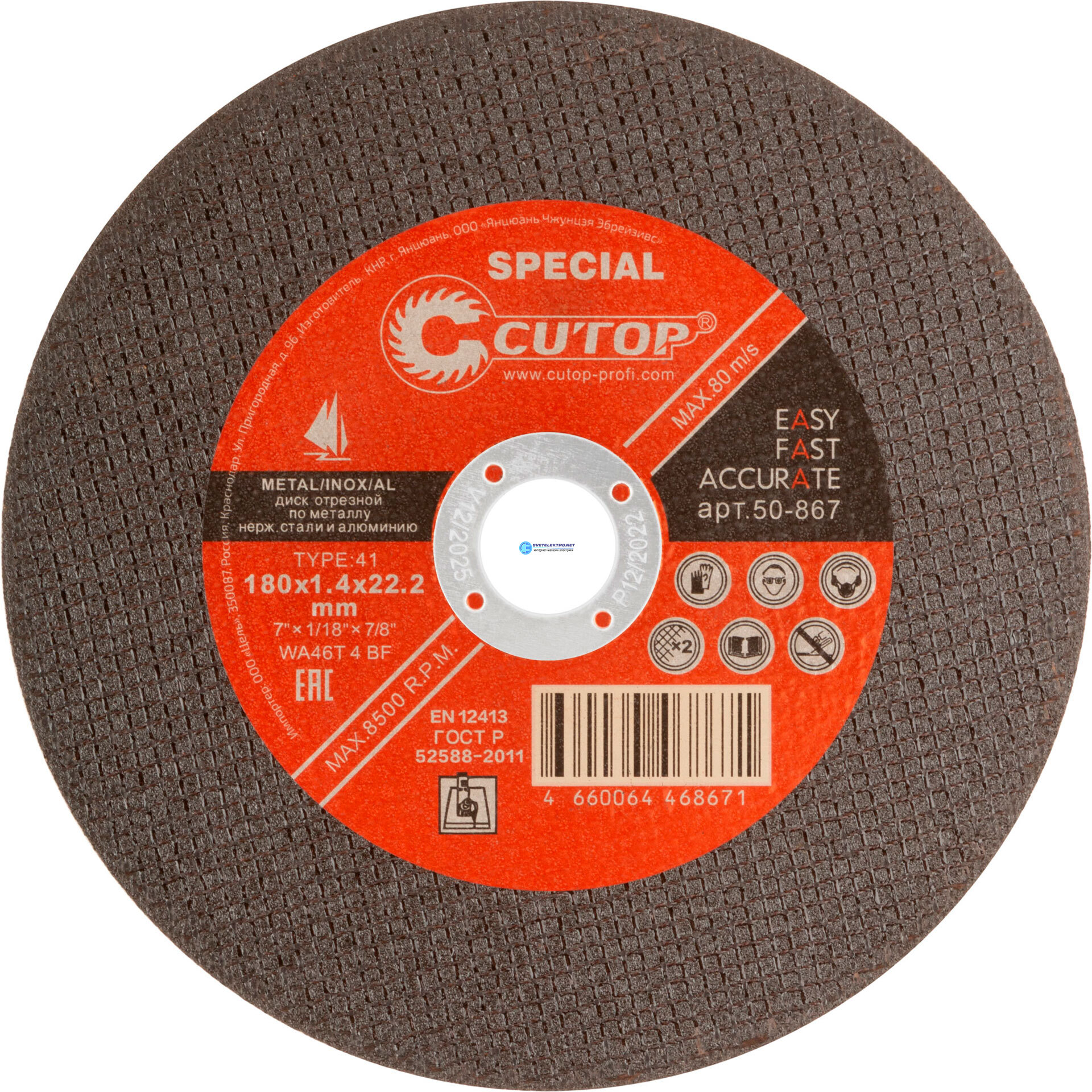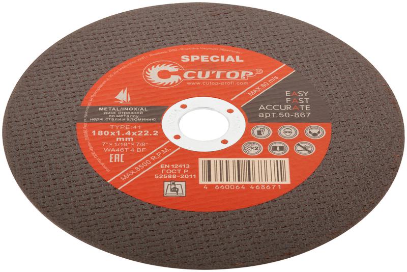 Диск профессиональный специальный отрезной по металлу, нержавеющей стали и алюминию Special, Т41-180 х 1,4 х 22,2 мм, код 50-867, производитель CUTOP