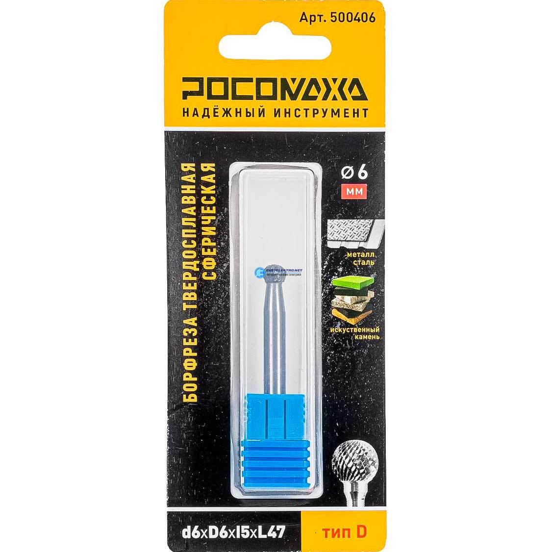 Борфреза твердосплавная сферическая d6хD6хl5хL47, тип D, код 500406, производитель Росомаха