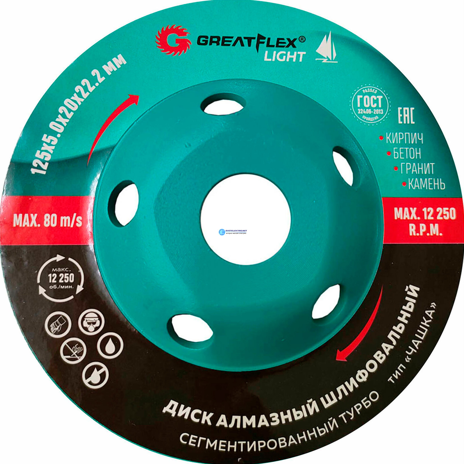 Алмазный шлифовальный диск ''Чашка'', сегментированный турбо, Light, 125 5.0 20 22.2 мм, код 55-781, производитель Greatflex