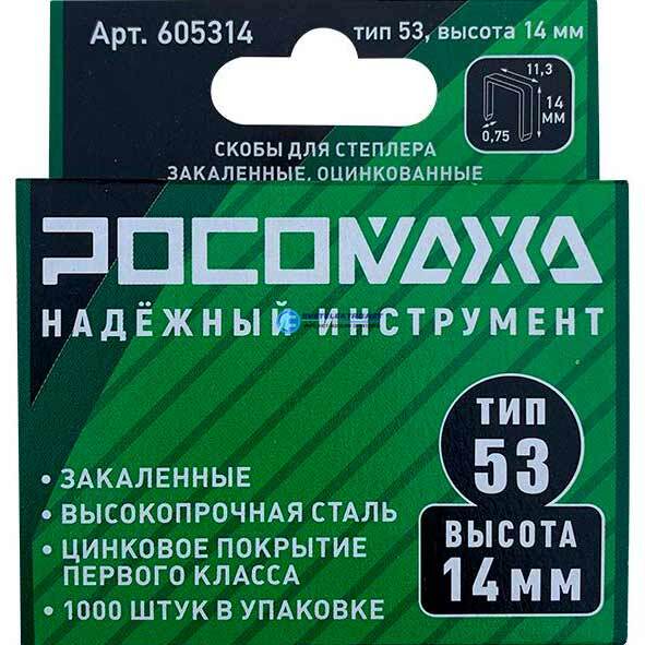 Скобы для степлера закаленные, оцинкованные тип 53, 1000 шт уп., высота 14 мм 605314 Росомаха