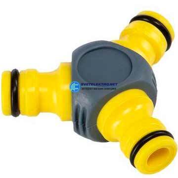 | Преимущества: | Надолго сохраняет рабочие свойства и внешний вид - устойчив к ультрафиолету и отрицательным температурам|Покрытие из термопластичной резины - тройник не скользит, даже если вы фиксируете его мокрыми руками|Монтаж без инструментов и крепежа - тройник легко устанавливается и так же легко отсоединяется|Полив без потерь - тройник оснащен уплотнительными кольцами, которые герметизируют соединение: |
