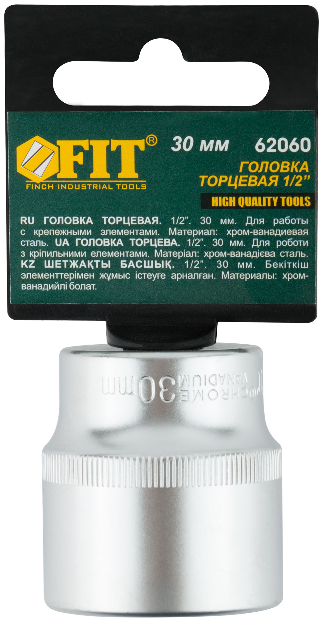 Головка 6-гранная CrV 1/2'' 30 мм, код 62060, производитель FIT