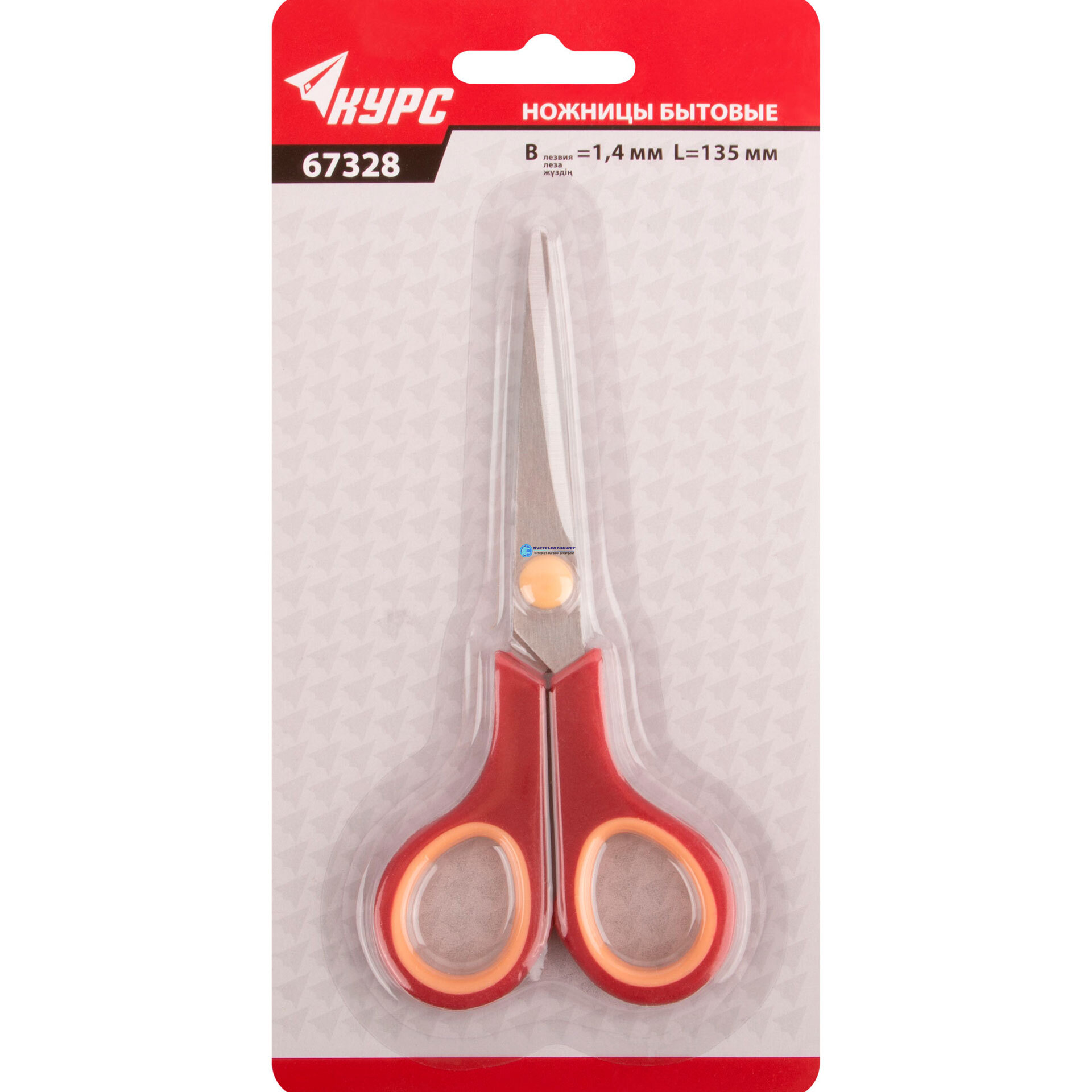 Ножницы бытовые нержавеющие, прорезиненные ручки, толщина лезвия 1.4 мм, 135 мм, код 67328, производитель Курс