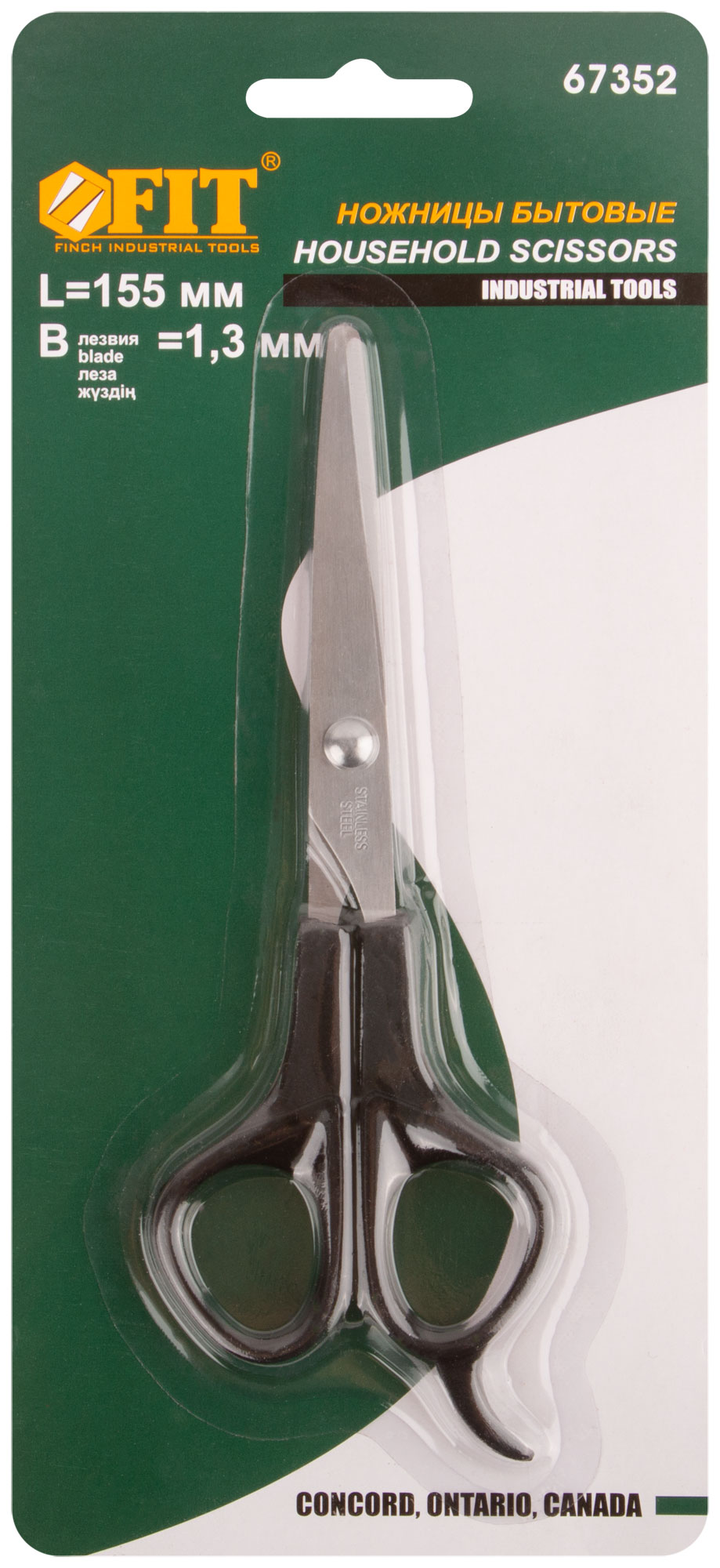 Ножницы бытовые нержавеющие, пластиковые ручки, толщина лезвия 1.5 мм, 160 мм, код 67352, производитель FIT