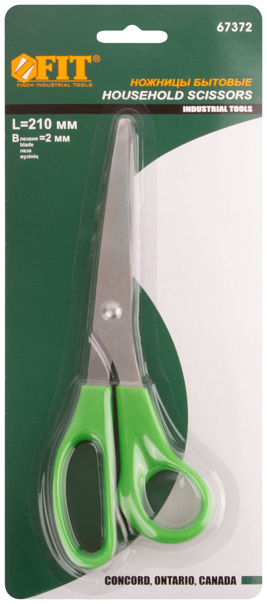 Ножницы бытовые нержавеющие, пластиковые ручки, толщина лезвия 2.0 мм, 210 мм, код 67372, производитель FIT