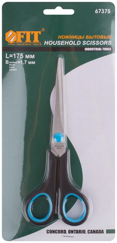 Ножницы бытовые нержавеющие, прорезиненные ручки, толщина лезвия 1.8 мм, 175 мм, код 67375, производитель FIT