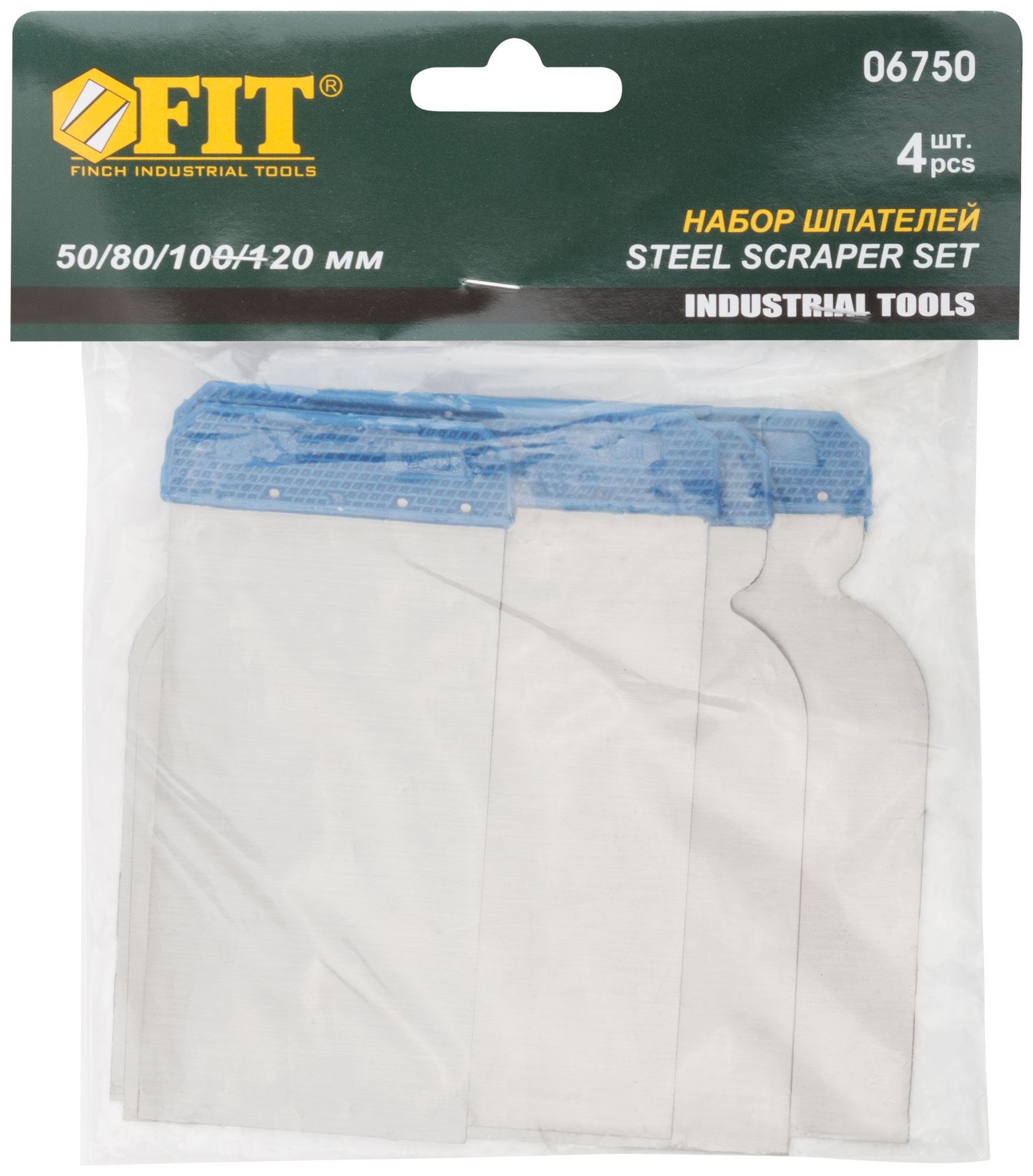Шпатели металлические набор 4 шт(''Япончик'') 50/80/100/120 мм, код 6750, производитель FIT