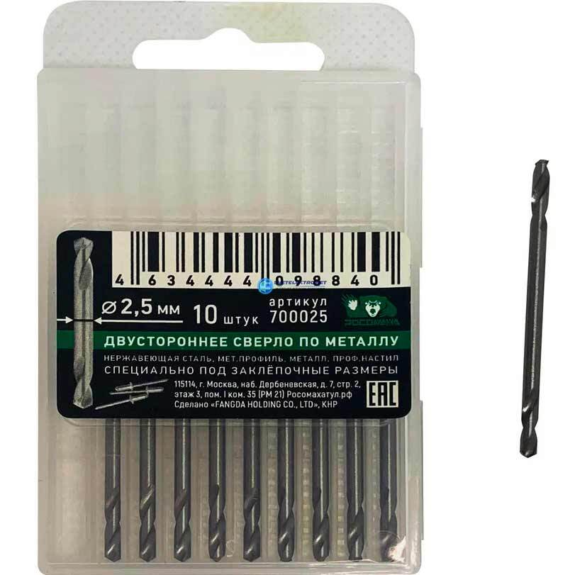 Сверла по металлу двухсторонние, HSS-G, 2,5х10х43 10 шт., код 700025, производитель Росомаха