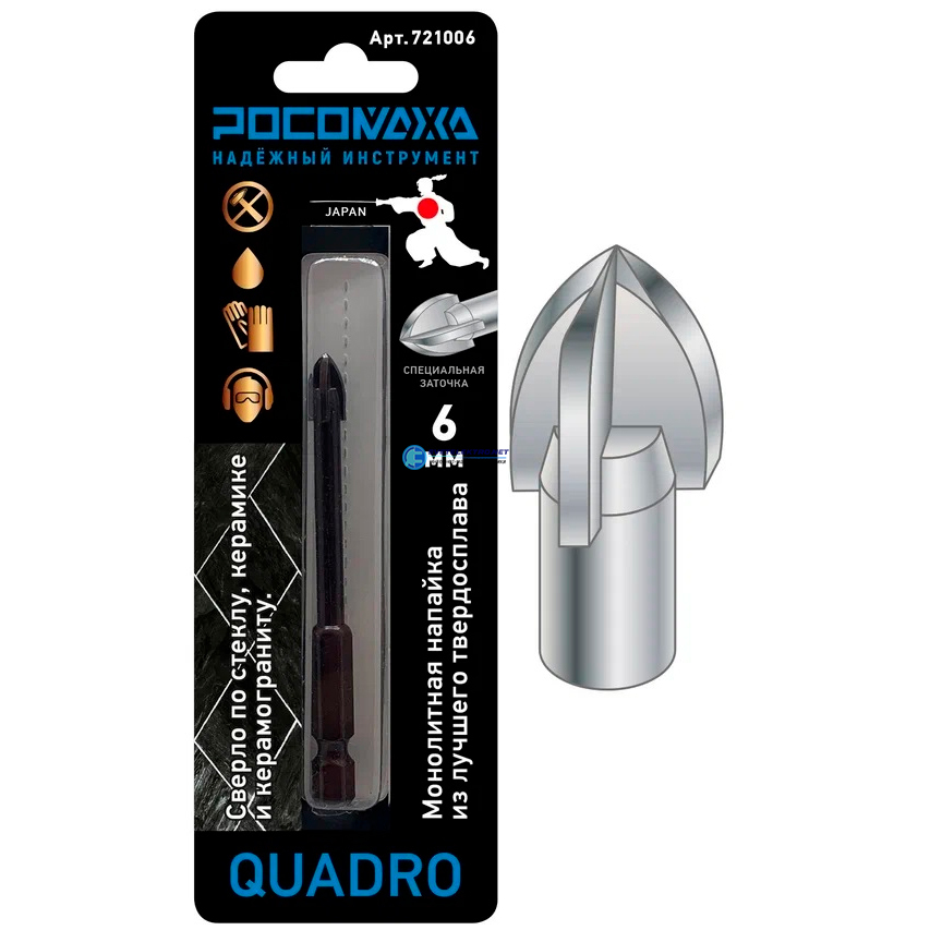 Сверло по стеклу, керамике и керамограниту 4 режущие грани 6 мм 721006 Росомаха