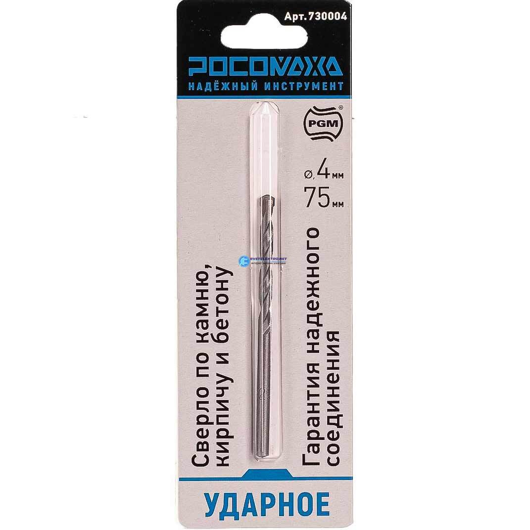 Сверло ударное по камню, кирпичу и бетону 4х75мм, код 730004, производитель Росомаха