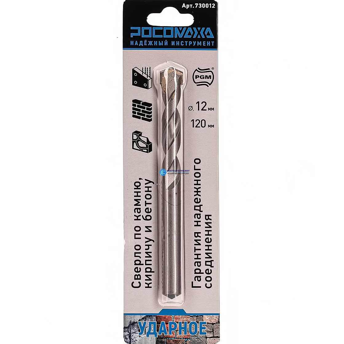 Сверло ударное по камню, кирпичу и бетону 12х120 мм, код 730012, производитель Росомаха