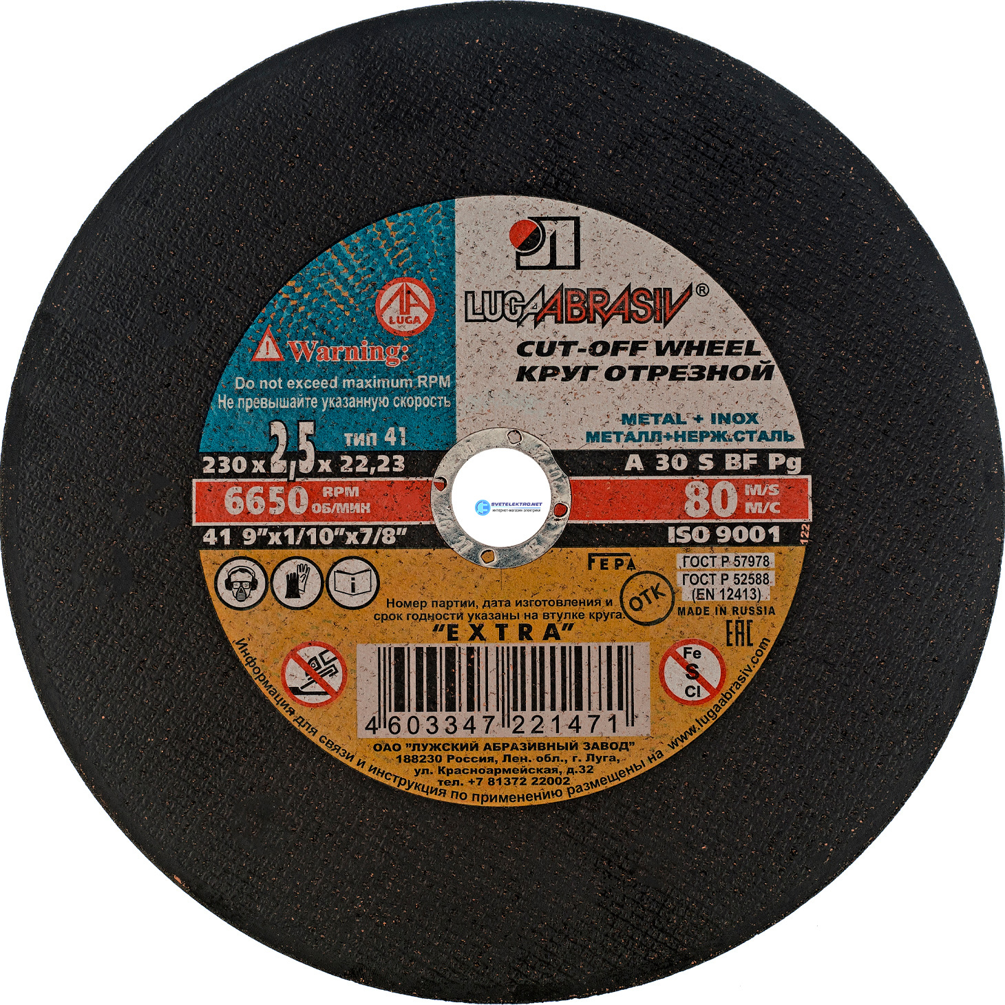 Круг отрезной по металлу, 230 х 2,5 х 22,2 мм (Луга), код 73681, производитель Luga-Abrasiv