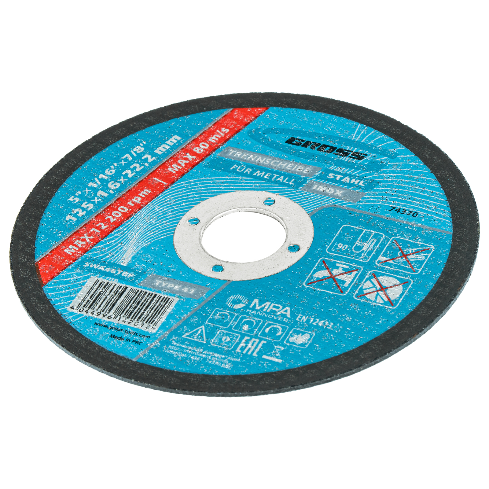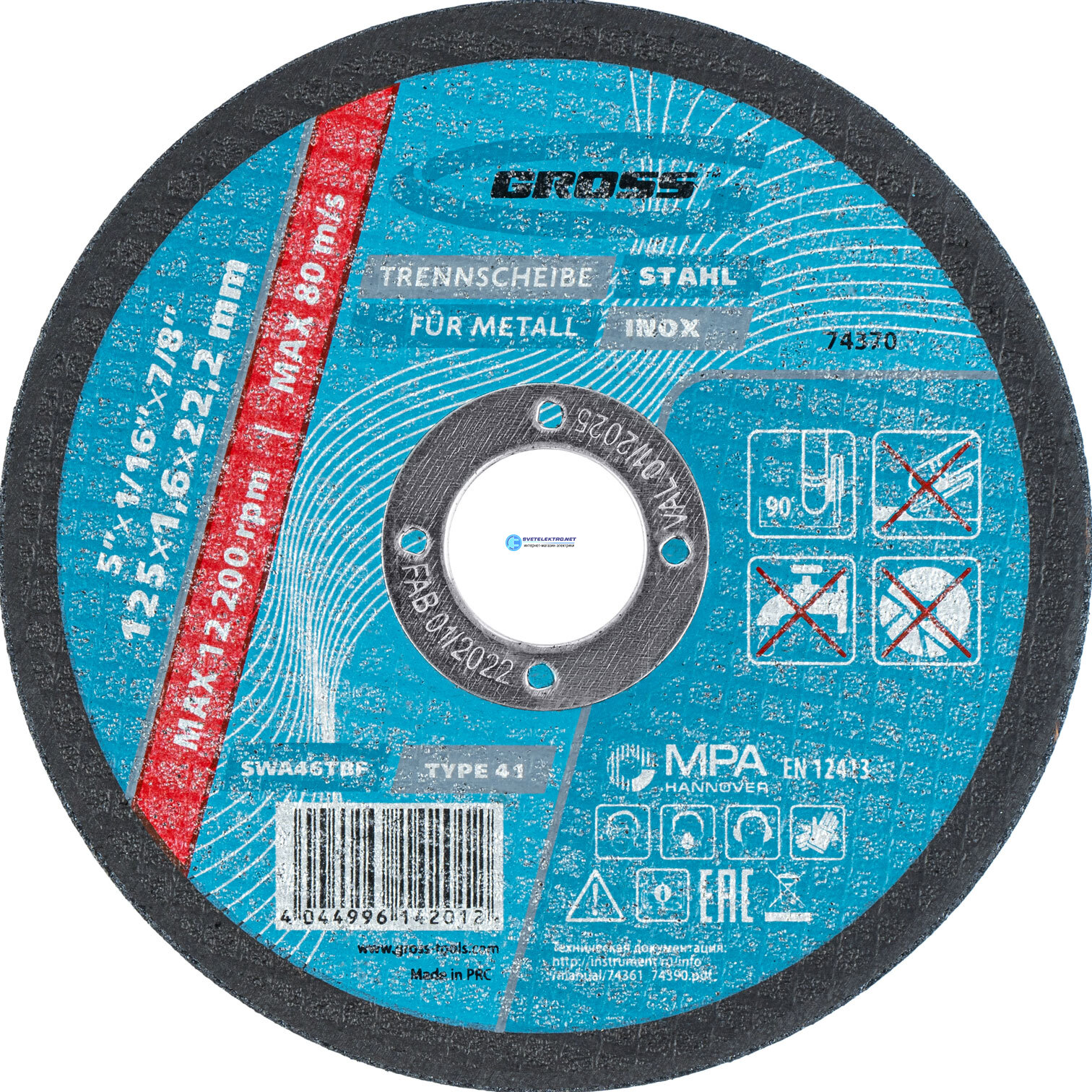 Круг отрезной по металлу, 125 х 1,6 х 22,2 мм, WA46TBF, код 74370, производитель GROSS