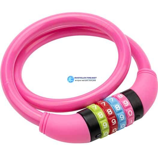 Замок тросовый кодовый взломостойкий для велосипедов и колясок 65 см розовый, код 79-0264, производитель REXANT