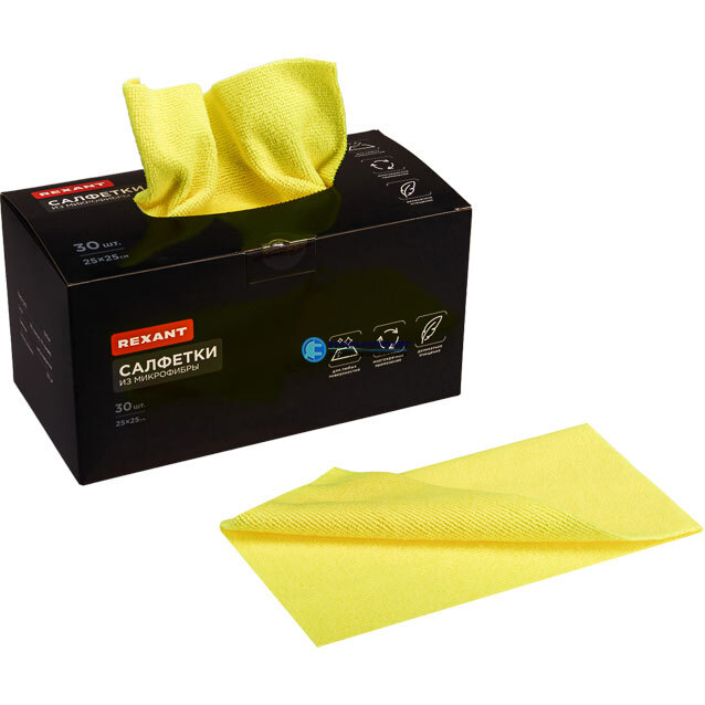 Салфетки из микрофибры картонной коробке, 25х25см, 200 гр/м2, 30 шт. в коробке, код 80-0808, производитель REXANT