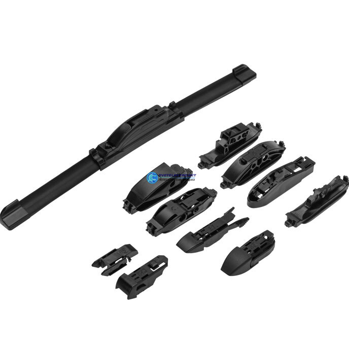 | Преимущества: | Плотное прилегание к стеклу и эффективное очищение благодаря каучуковому полотну с графитовым напылением|10 адаптеров в комплекте|Аэродинамическая форма: |