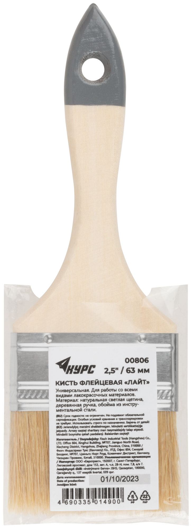 Кисть флейцевая ''Лайт'', натур. cветлая щетина, деревянная ручка 2.5'' (63 мм), код 806, производитель Курс