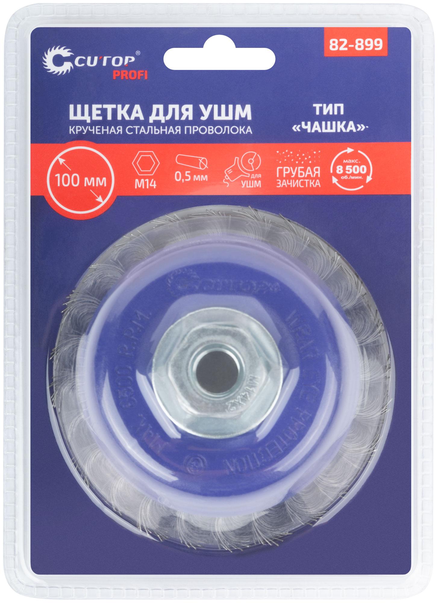 Щетка для УШМ, М14, Чашка, крученая витая проволока 0,5 мм, 100 мм, блистер, Profi, код 82-899, производитель CUTOP