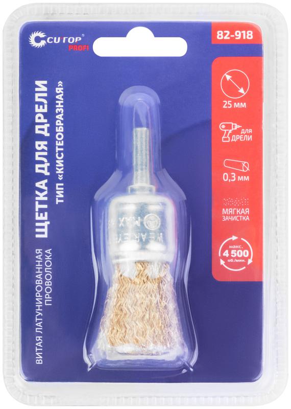 Щетка для дрели, Чашка, латунированная витая проволока 0,3 мм, 25 мм, блистер, Profi, код 82-918, производитель CUTOP