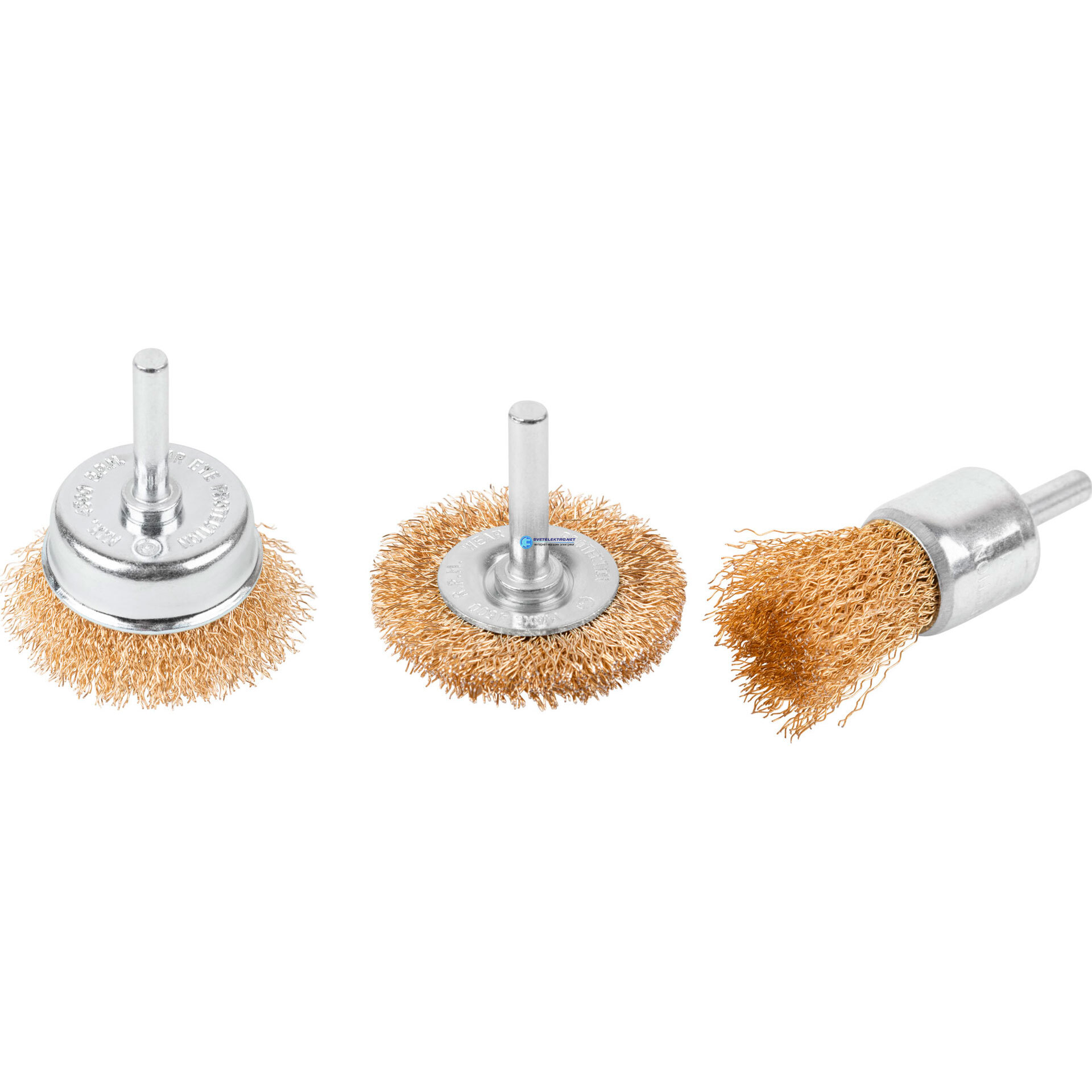 Набор щеток для дрели, 3 шт., Чашки 25, 50 мм, Плоская 50 мм, латунированная витая проволока, блистер, Profi, код 82-926, производитель CUTOP