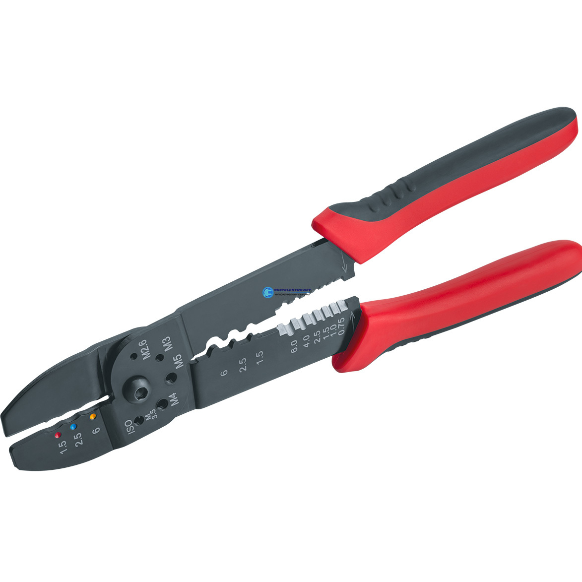 | Преимущества : | 4 функции в одном инструменте - снятие изоляции, резка проводов и мягкой проволоки, опрессовка наконечников, резка болтов|Корпус из высокоуглеродистой стали|Рукоятки из термопластичной резины, |