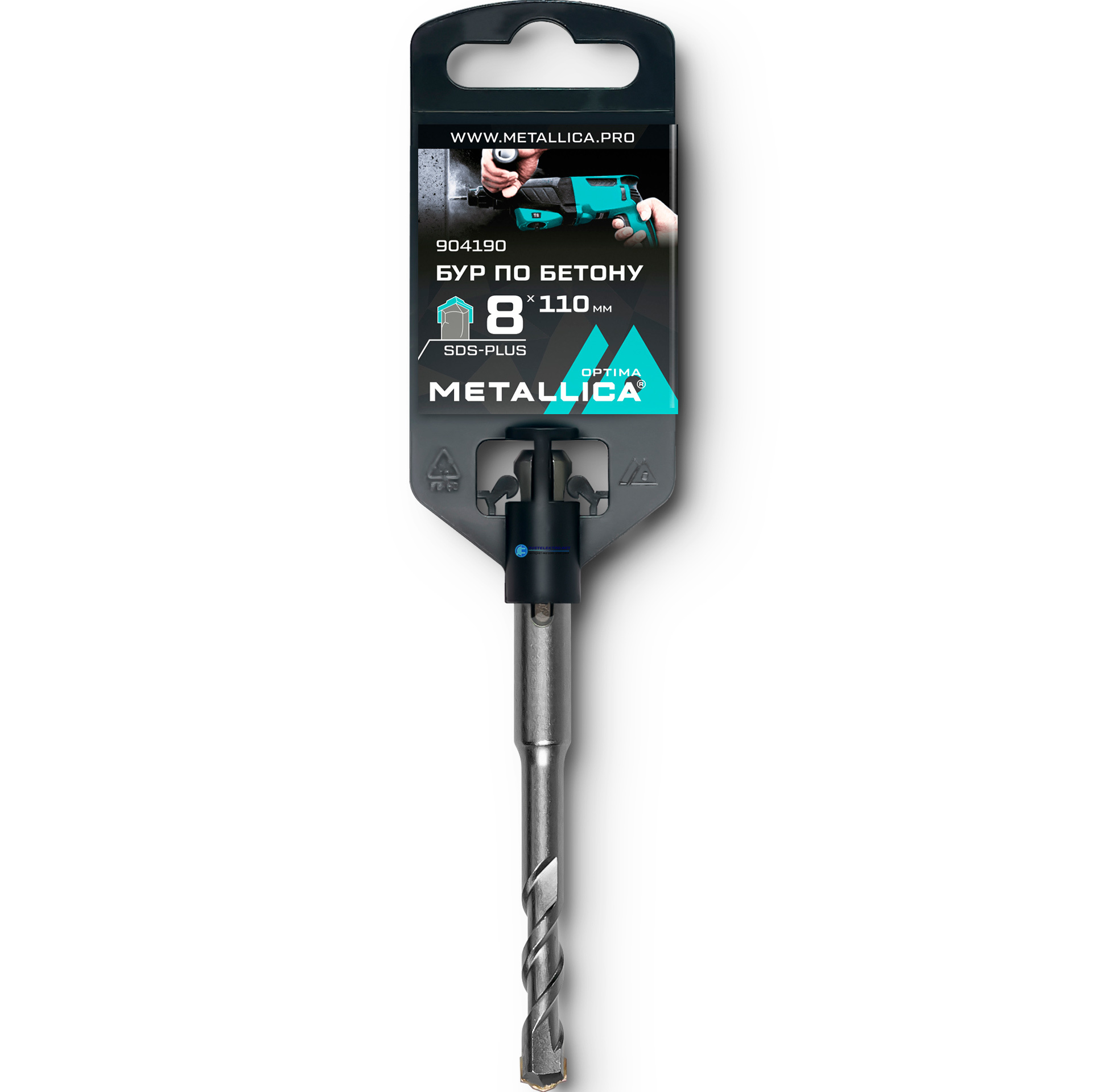 Бур по бетону SDS-plus 8х110/50 мм, напайка с центром, 2 спирали, код 904190, производитель METALLICA