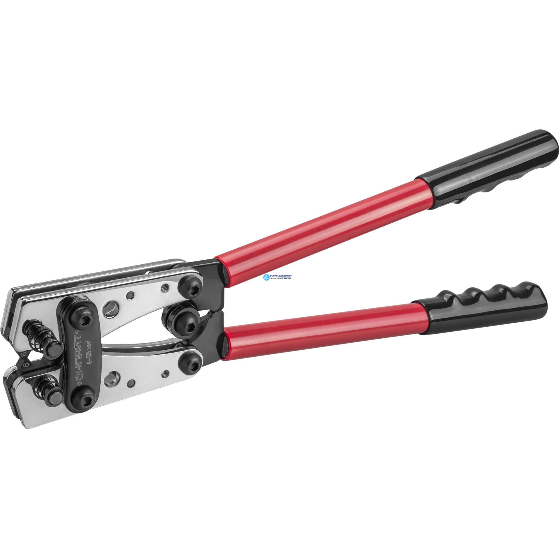 | Преимущества: | Многопозиционные матрицы револьверного типа позволяют делать опрессовку нескольких сечений|Эргономичные накладки на рукоятках служат для крепкого и надежного хвата|Воронение стали защищает от коррозии: |