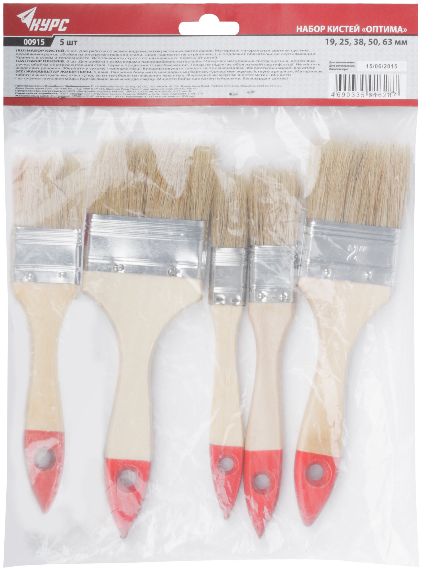 Набор кистей ''Оптима'' 5 шт (19, 25, 38, 50, 63 мм) 915 Курс