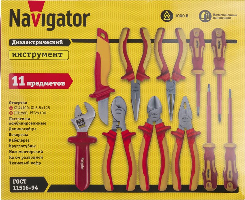 Набор инструмента NHT-Ind04-H11 (диэлектрические, 11 шт), код 93433, производитель Navigator