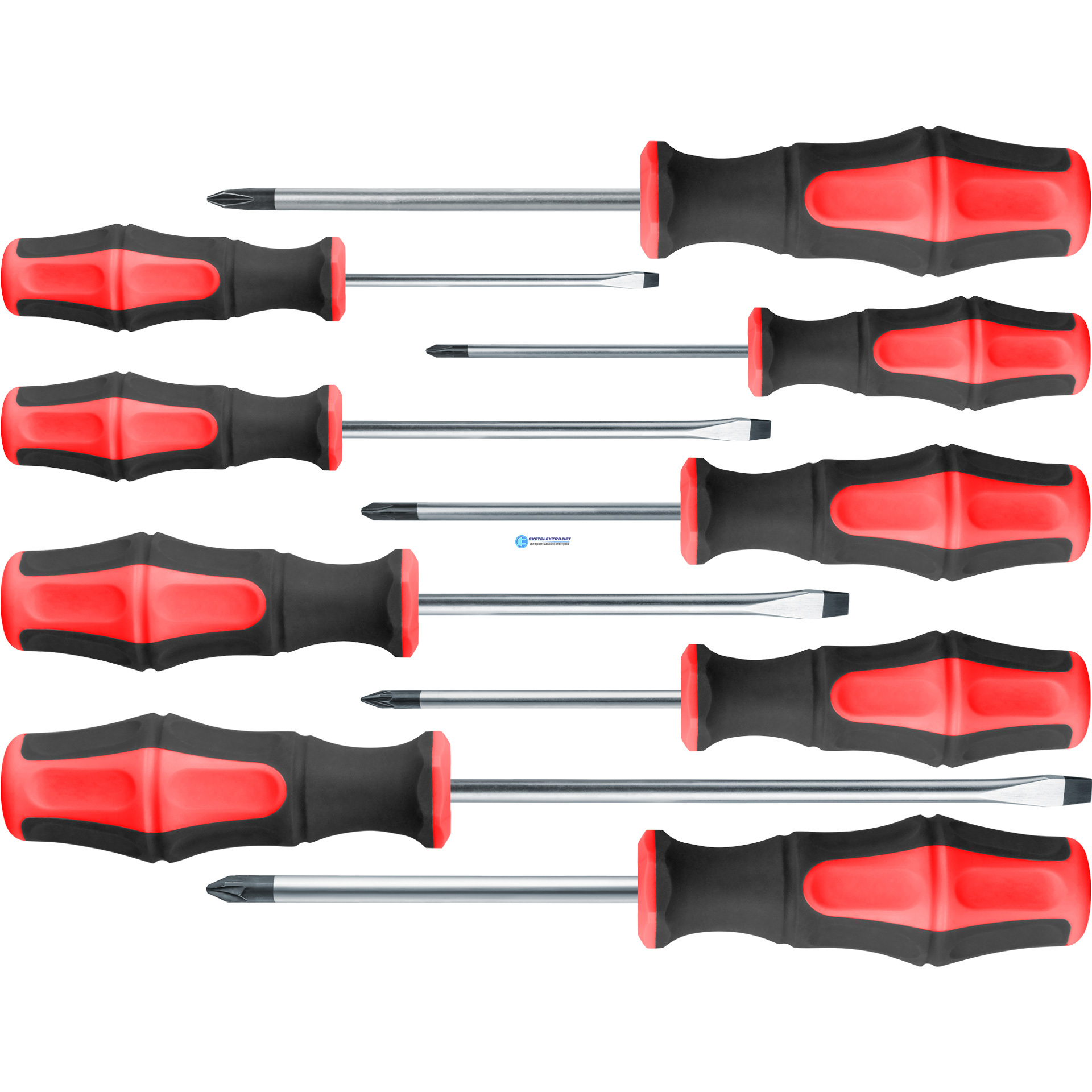 | Преимущества: | Стержни из легированной инструментальной стали|Твердость закалки 60 HRC|Антикоррозионное защитное покрытие|Наконечники закалены и намагничены|Рукоятки из полипропилена и термопластичной резины|Эргономичная шестигранная форма рукоятки: |