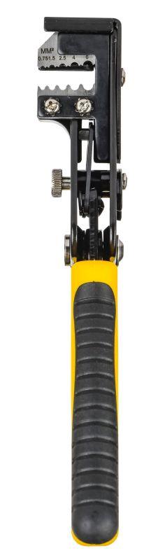 | Преимущества : | Самоцентрирующиеся лезвия из стали SK5 с проточками под провод 0.75,1.5, 2.5, 4.0, 6.0 мм2 для снятия изоляции без повреждения жилы.|Оснащён ограничителем длины зачищаемого провода.|Инструмент оснащен двумя сильными возвратными пружинами. |Двухкомпонентные рукоятки для надежного захвата и уверенного манипулирования.|Инструмент имеет сменное лезвие из стали SK5 позволяющее производить точный и аккуратный рез провода., |