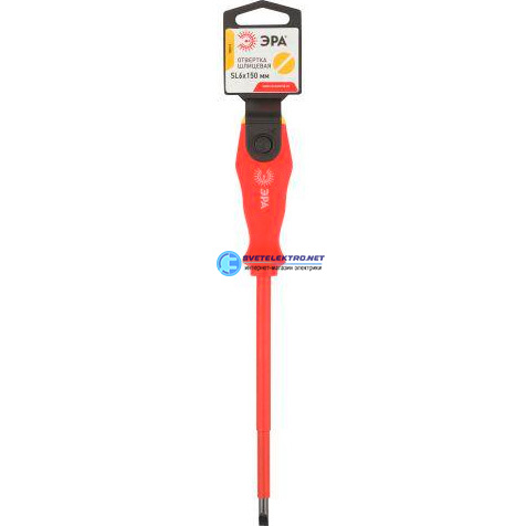Отвертка SL6х150 мм шлицевая диэлектрическая до 1000 В двухкомпонентная рукоятка, код Б0055877, производитель ЭРА