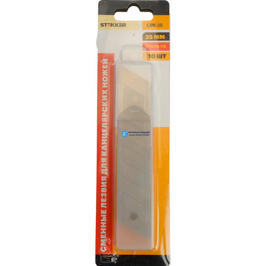 Лезвия для канцелярских ножей 25мм блистер 10шт, код CBK-25 50191, производитель Stekker