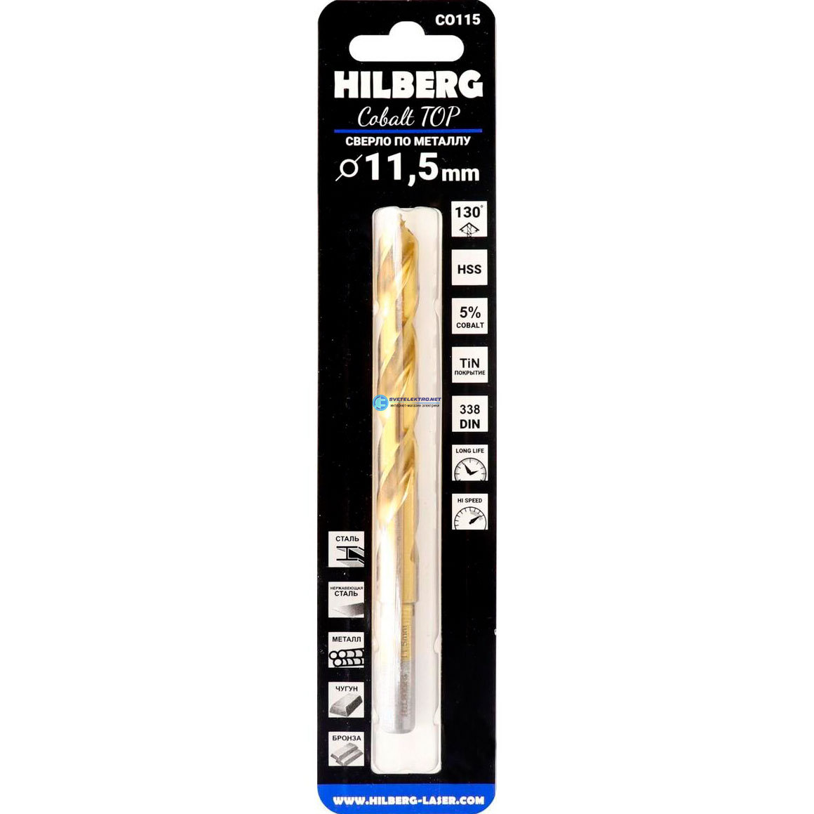 | Комплектация: | Сверло по металлу 11.5*142(94)мм Hilberg Cobalt 5% TOP, CO115, |