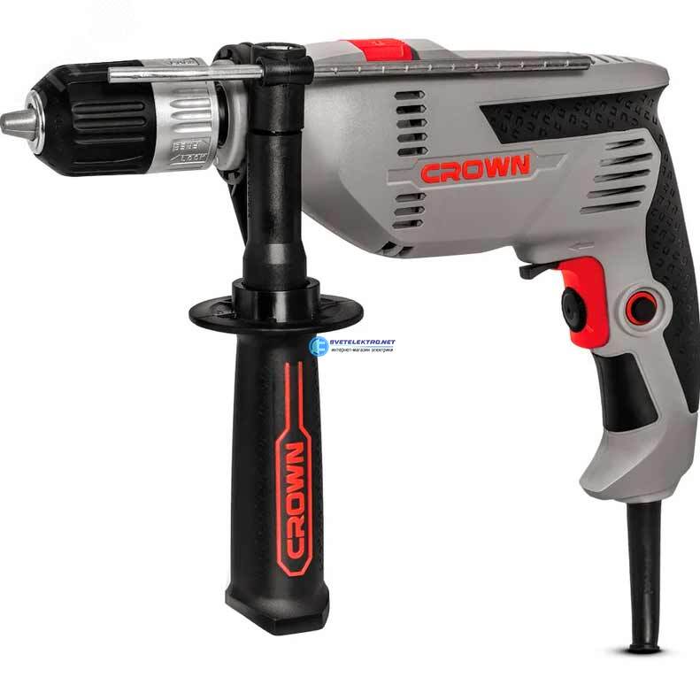 | Преимущества: | Функция реверса упрощает выведение застрявшего в материале сверла|Электронная регулировка оборотов помогает выбрать оптимальную скорость для работы в зависимости от плотности материала и диаметра оснастки|Мощный двигатель Crown CT10129C для высокой производительности|Быстрозажимной патрон для быстрой смены оснастки|Дополнительная рукоятка для контроля над инструментом: |