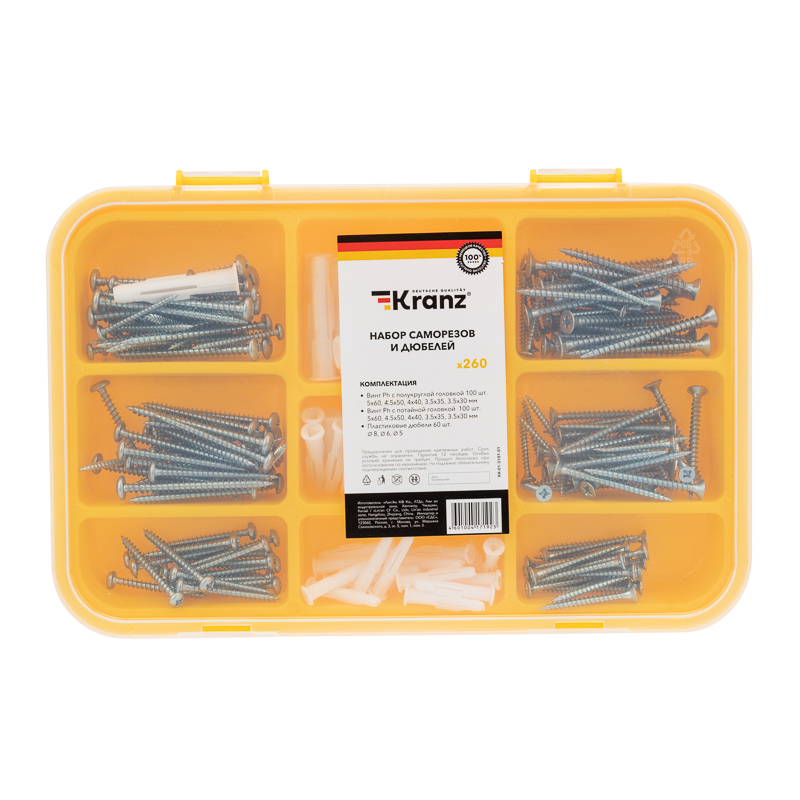 Набор саморезов и дюбелей (260 шт) KRANZ KR-01-3101-01 Kranz
