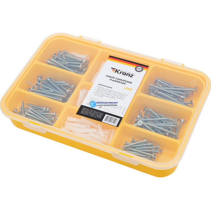Набор саморезов и дюбелей (260 шт), код KR-01-3101-01, производитель Kranz