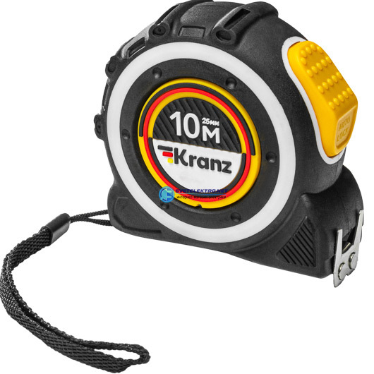 Рулетка с автостопом 10 м x 25мм прорезиненное покрытие, код KR-12-9024, производитель Kranz