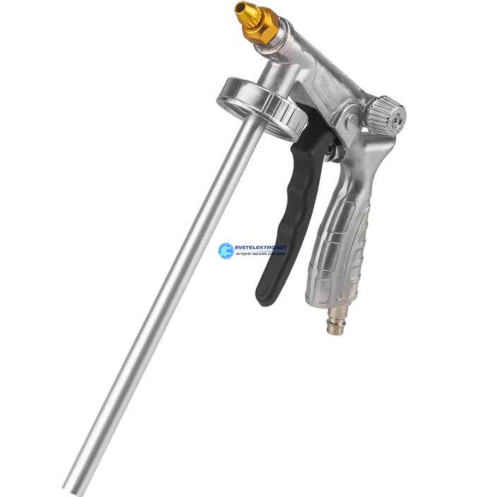 | Преимущества: | Ударопрочная конструкция устойчива к механическим повреждениям и износу|Прочный и устойчивый к воздействию химии корпус делает возможной длительную работу с пистолетом|Регулировка давления позволяет адаптировать пистолет под различные условия покрытия|В комплекте гибкая насадка для распыления в труднодоступных местах: |