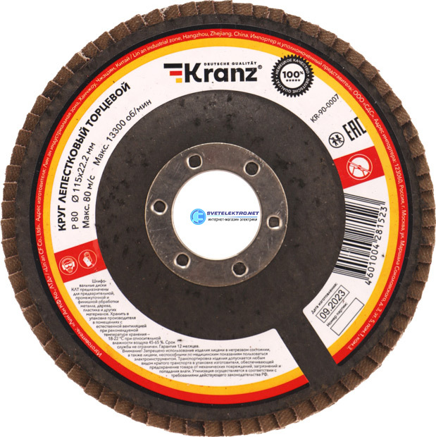 Круг лепестковый торцевой, P80, 115х22,2мм, код KR-90-0007, производитель REXANT