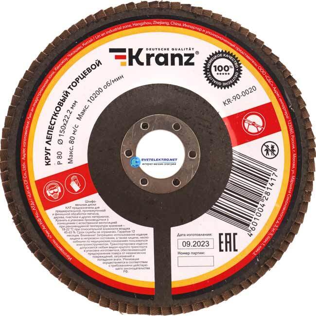Круг лепестковый торцевой, P80, 150х22,2мм, код KR-90-0020, производитель REXANT