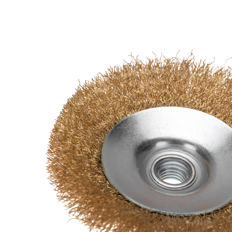 Щетка коническая для УШМ, витая латунированная проволока, 115мм, М14 KR-91-1206 Kranz
