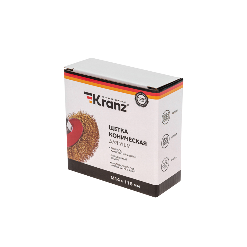 Щетка коническая для УШМ, витая латунированная проволока, 115мм, М14, код KR-91-1206, производитель Kranz