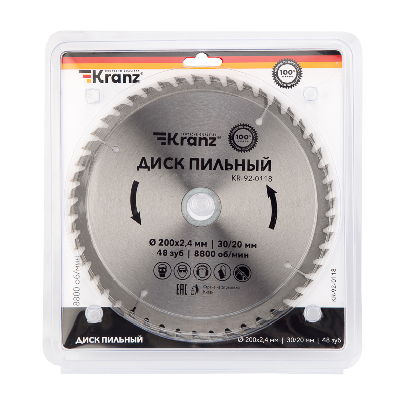 Диск пильный 200 мм х 48 зуб х 30/20 мм, код KR-92-0118, производитель Kranz
