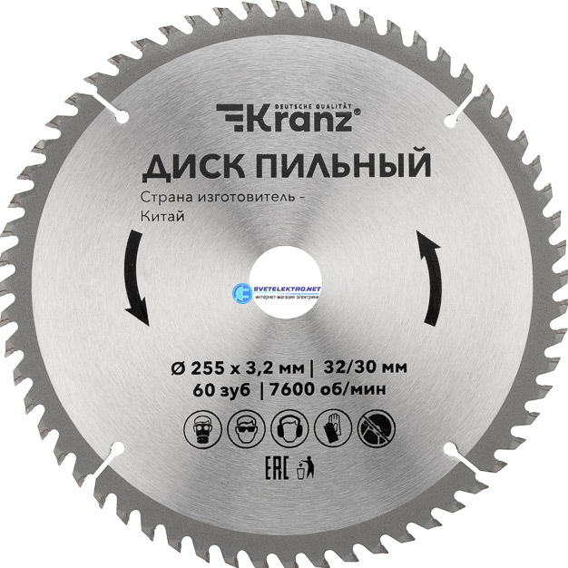 Диск пильный 255 мм х 60 зуб х 32/30 мм, код KR-92-0131, производитель Kranz