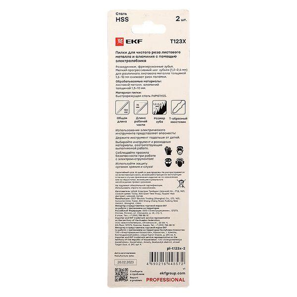 Пилки для электролобзика T123X (чистовой рез листового металла и Al)(HSS)(2 шт) Professional pl-t123x-2 EKF