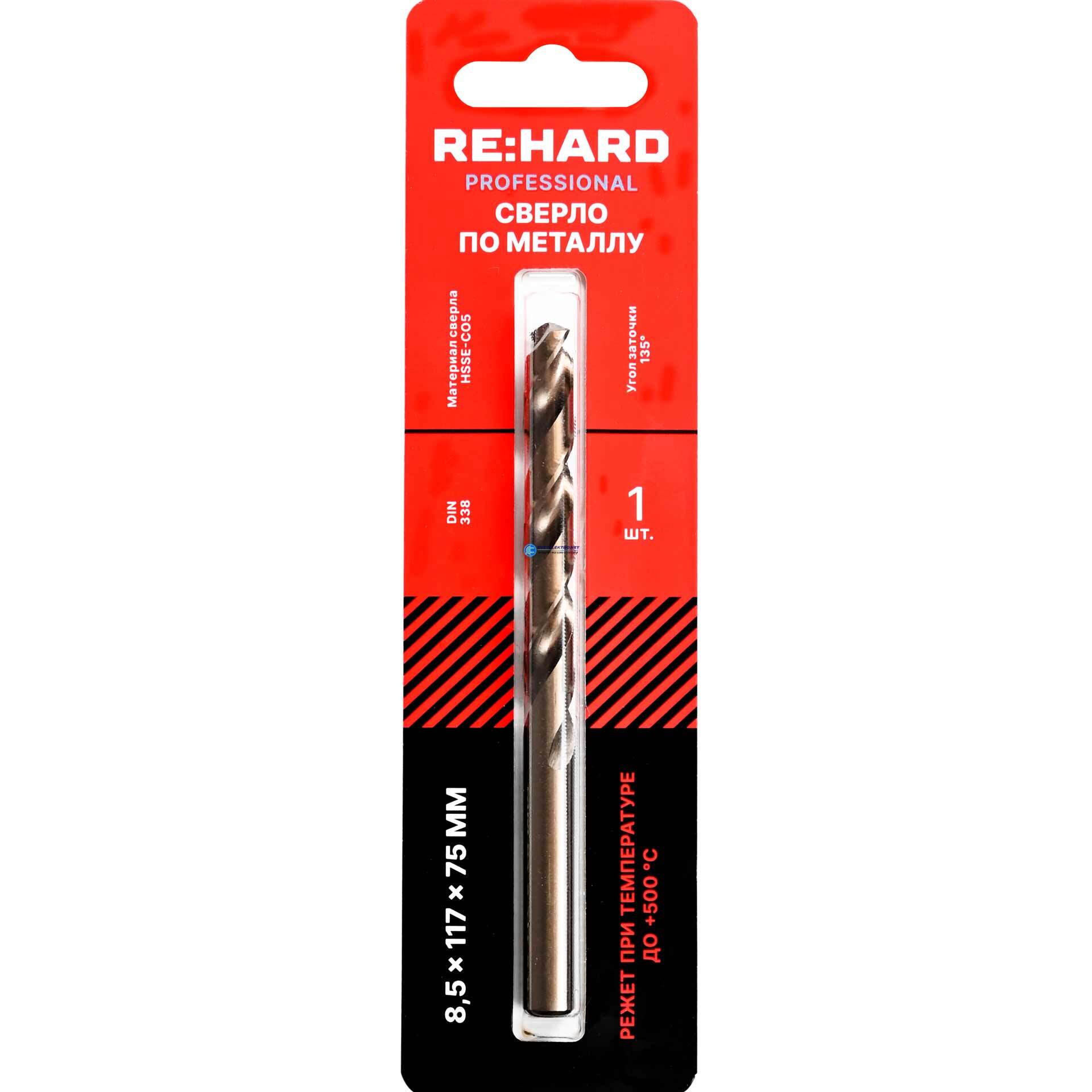 Сверло по металлу ц/х 8.5х117х75 HSSE-CO5 DIN 338 135 градусов, код RH.HSSE85, производитель RE:HARD